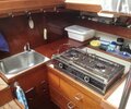 Genau wie das Waarschip 725 (“Vierteltonner”) verdankt die 870 seinen Beinamen “Halbtonner” der IOR-Regattaklasse, für die sie entworfen wurde. Die “Koene Groene” ist ein Familienschiff mit einer besonderen Ausstrahlung. An Bord fällt als erstes das prächtige Teakdeck auf, es gibt dem Schiff nicht nur einen besonderen Charme, sondern sorgt auch für guten Grip. Die Holzkonstruktion ist in exzellentem Zustand: alles im Lack! Innen herscht eine gemütliche maritime Atmosphäre, eine Elektroheizung spendet Wärme. “Koene Groene” hat eine klassische Unterteilung. Um den Tisch im Salon gibt es lange Bänke und reichlich Stauraum. An Steuerbord ist der Navigationstisch mit einem zusätzlichen Bett und an Backbord ist die Kombüse mit zwei Kochplatten. Im Vorschiff gibt es ein Bett für zwei Personen und eine Toilette mit Staufächern. Vollständige Ausrüstung für 5 Personen: 2-Zylinder-Diesel mit 15 PS, Rollfock, Wassertank mit Fußpumpe, Rettungswesten, Echolot und Logge, Beleuchtung, GPS, Seekarten und der Wassersport-Almanach Band 1 & 2 des Niederländischen Fremdenverkehrsbundes. 230V-Landanschluss mit elektronischem Akkuladegerät, 12V-Anschluss, Radio und CD-Spieler. Die Stehhöhe beträgt 1,83 m. Die Segel-Ausrüstung mit Rollfock passt hervorragend zum niederländischen Klima und den Wetterbedingungen auf dem IJsselmeer. Segelkleidung und Bettwäsche ist optional zumietbar.